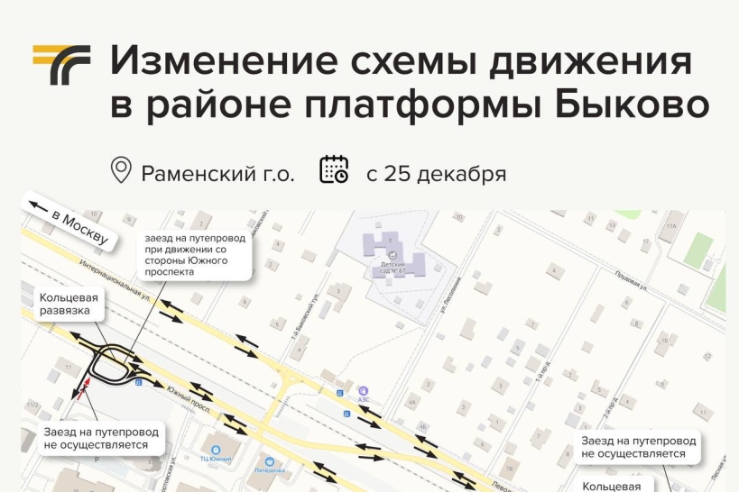 С 25 декабря изменится схема движения транспорта в районе платформы Быково